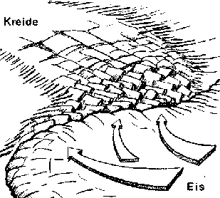 Im Pleistozän (vor 1,6 Mio. - 100.000 Jahren) war das Gebiet vom Inlandeisbedeckt, und es erfolgte eine Ablagerung von Geschieben und Sanden. Der Druckdes Eises führte zur Schrägstellung der Schichten und zur Ausbildungder typischen mittelgebirgsartigen Endmoränenlandschaft.