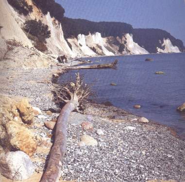 Der ganze östliche Teil der Halbinsel Jasmund von Sassnitz bis Stubbenkammer besteht aus einer ununterbrochenen Kette von mehr oder minder eigenartig gestalteten Kreidefelsen in wechselnder Höhe bis zu 130 Meter, die mit Gestrüpp bewachsen und auf ihrer Höhe mit dem schönen Buchenwald der Stubnitz gekrönt ist. Viele Bäche durchschneiden Waldschluchten. Mehrere Vorsprünge, Orte, genannt, ragen in die See hinein und bilden wiederum größere Buchten, wodurch das ganze Ufer ein wechselvolles Gepräge erhält.