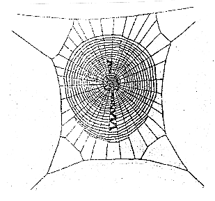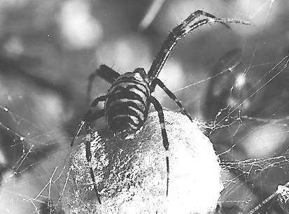 Die Naben der Netze waren von einem regellosen, feinen, mehr oder minder dichten Gespinst überzogen. Nicht bei allen Netzen war indessen über oder unter der Nabe das für Wespen- oder Zebraspinnen angeblich typische ÆStabiliment" - ein zickzackförmiges Gespinstband aus feinen, lockeren Fadensträngen auszumachen.